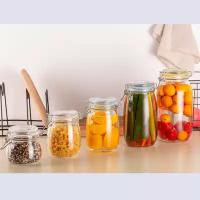 Sealed jar glass bottle with lid storage jar honey bottle jar lemon passion fruit household sparkling glass bottle