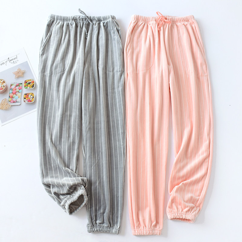 Fairy warm pants Island velvet pajamas women's autumn and winter pants Flannel loose home pants warm coral velvet pants