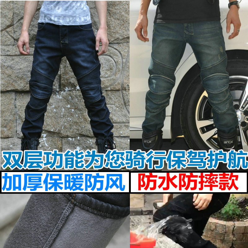 Winter Glint Locomotive Riding Jeans Locomotive Riding Pants Winter Plus Suede Waterproof Warm Locomotive Racing Pants
