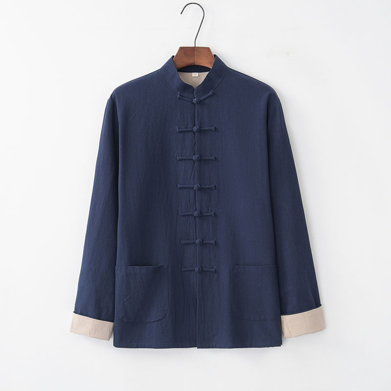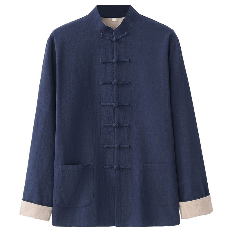 Cotton and linen Tang suit men's youth jacket Chinese style men's Chinese retro long-sleeved Hanfu men's ancient style linen layman's clothing - Taobao