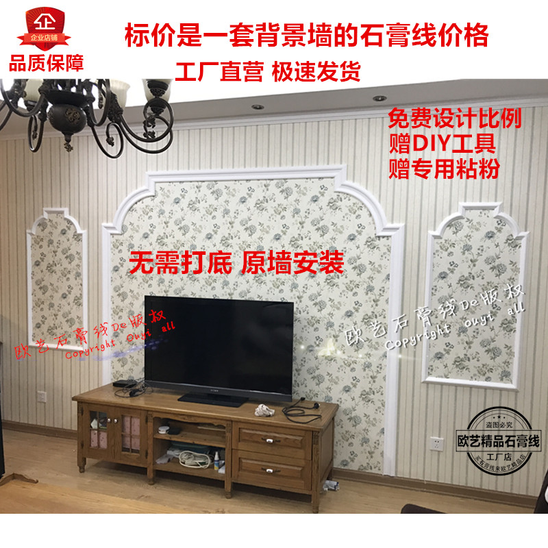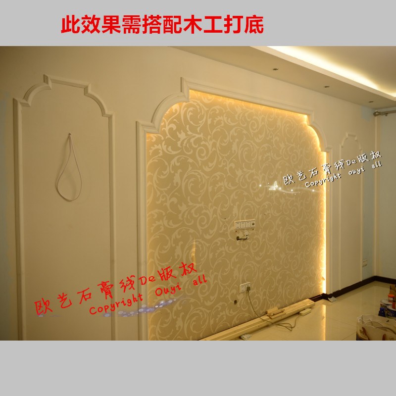 Flat gypsum line background wall Gypsum line modeling decoration American European Gypsum line TV wall Arc modeling