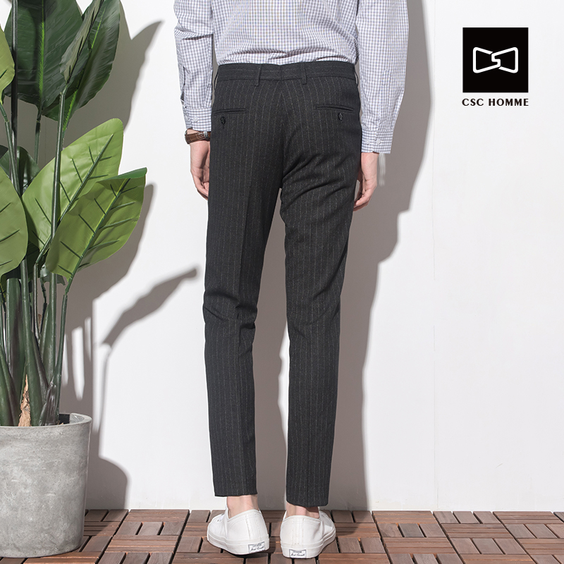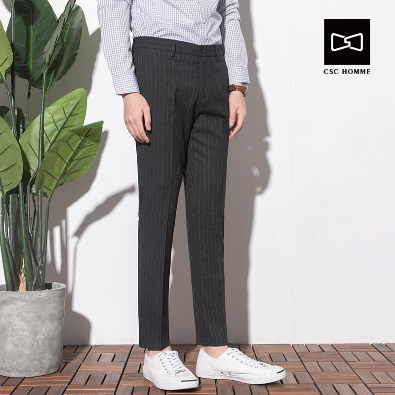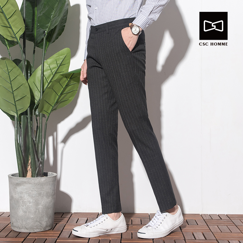 CSOCSO Spring Autumn Men's Striped Suit Pants Han Wind Currents Free Ironing Casual Black Positive Dress Professional Pants