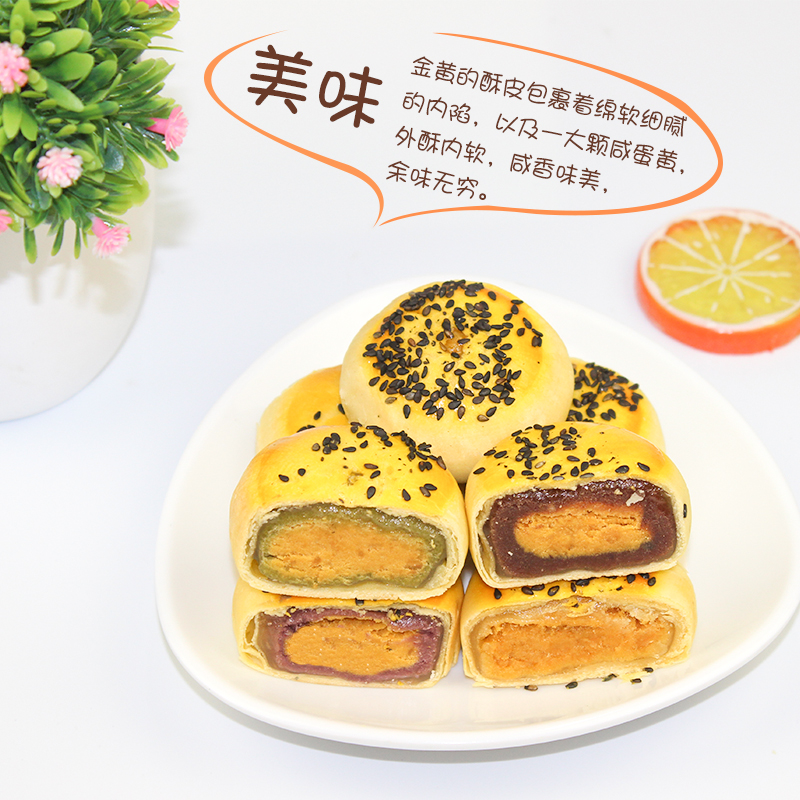 Flour, white sugar, pork floss, vegetable oil, glutinous rice flour, skinless mung beans, water, salted duck eggs, eggs, black sesame, anhydrous ghee, edible salt, food flavors and flavors