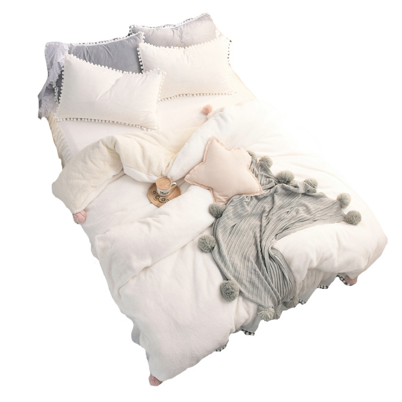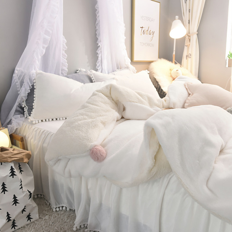 ins net red rabbit velvet 4 4 pieces white bed linen girl heart winter princess wind coral suede quilt cover crystal suede