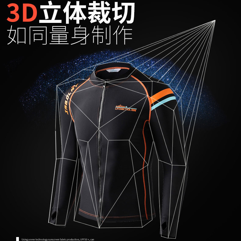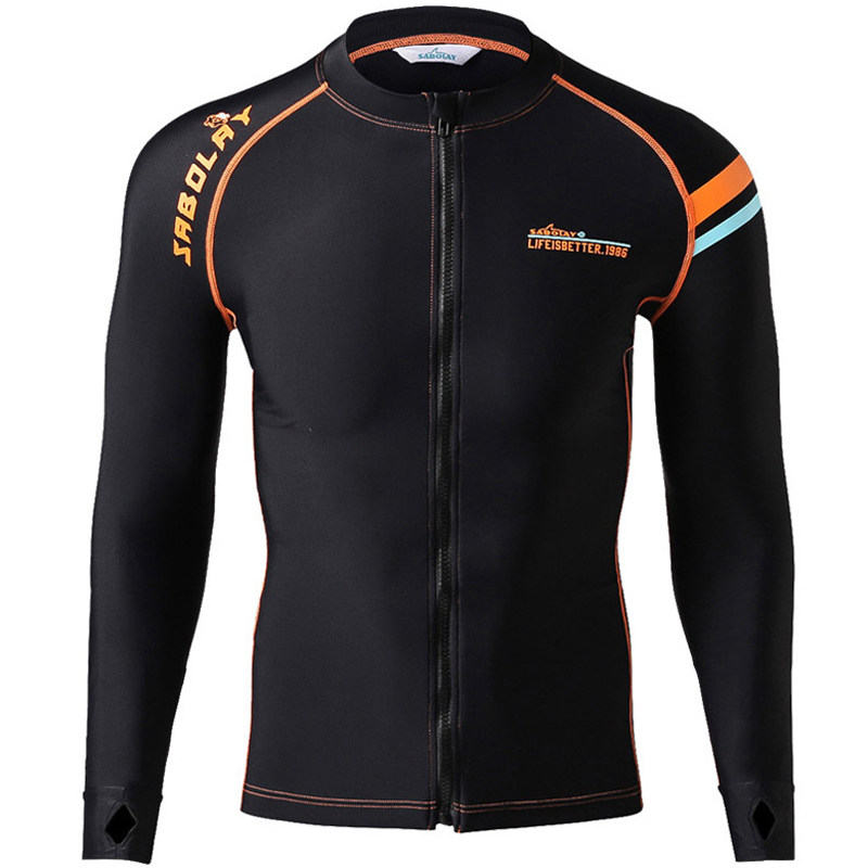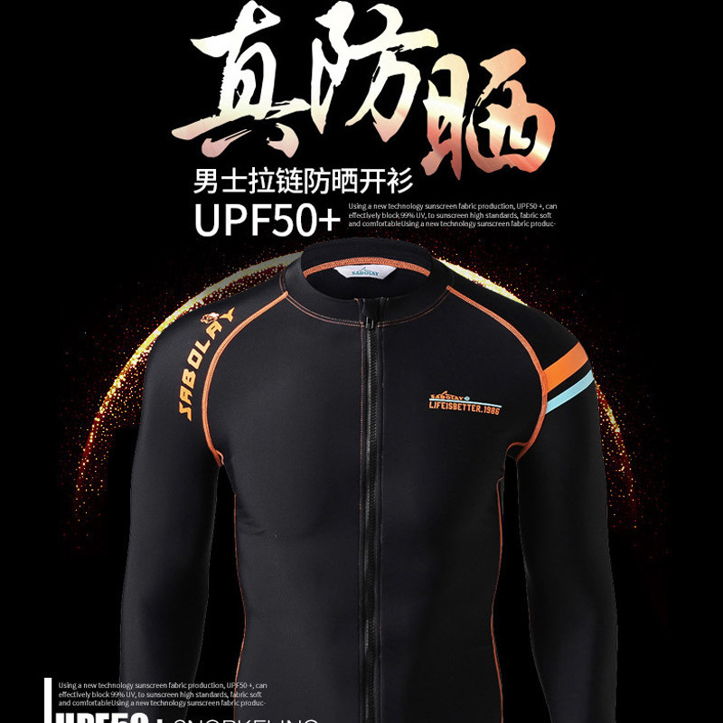 SABOLAY zip wetsuit Jellyfish suit Men's surf suit Snorkeling suit Two-piece sunscreen long sleeve swimsuit men's top