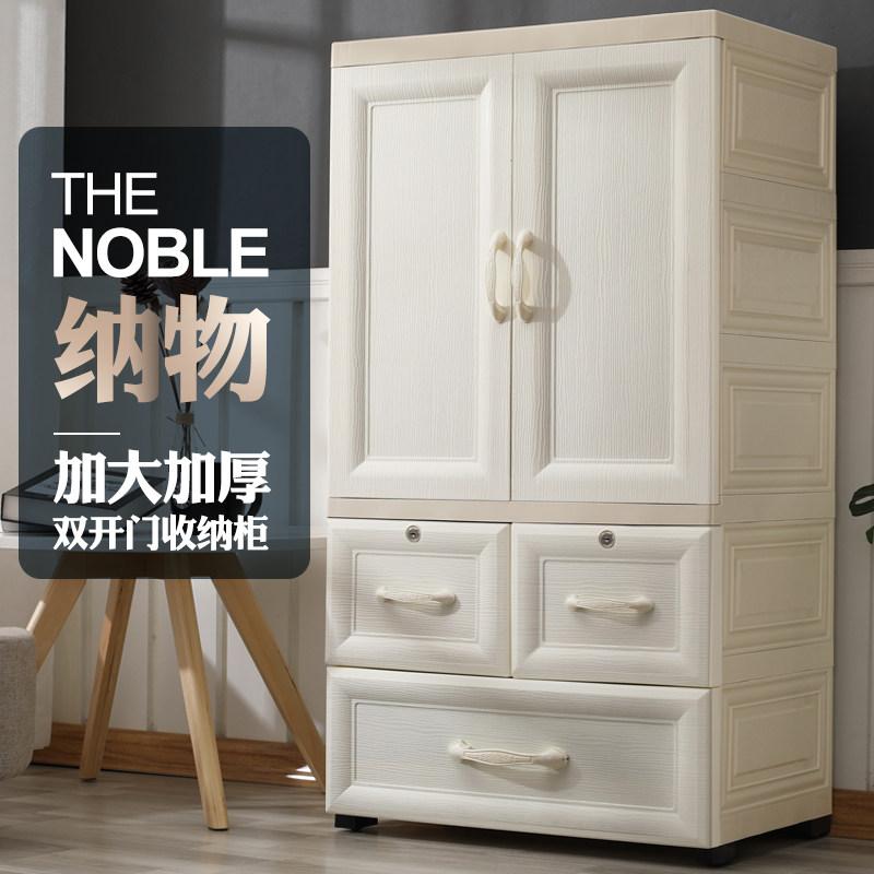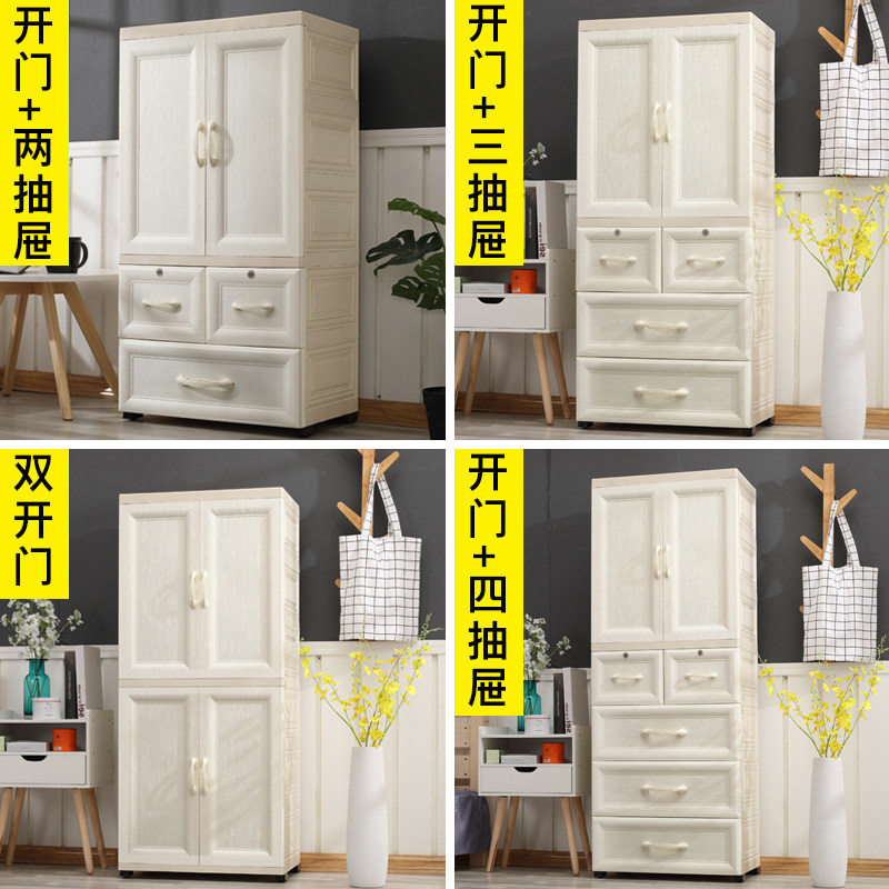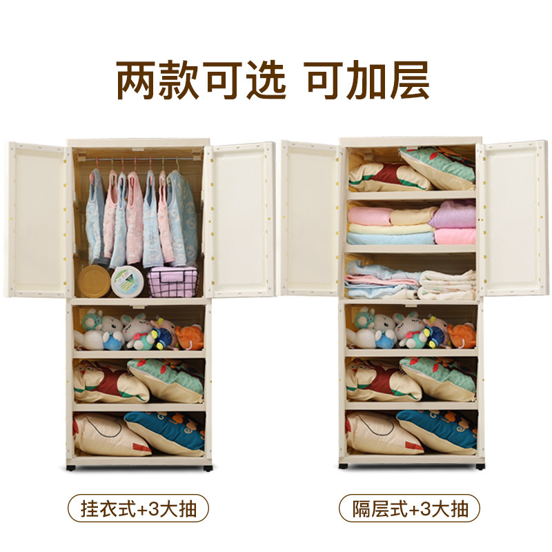 Children Wardrobe Multilayer Double Doors Drawer Plastic Lockers Baby Containing Cabinet Finishing Cabinets Baby Closet