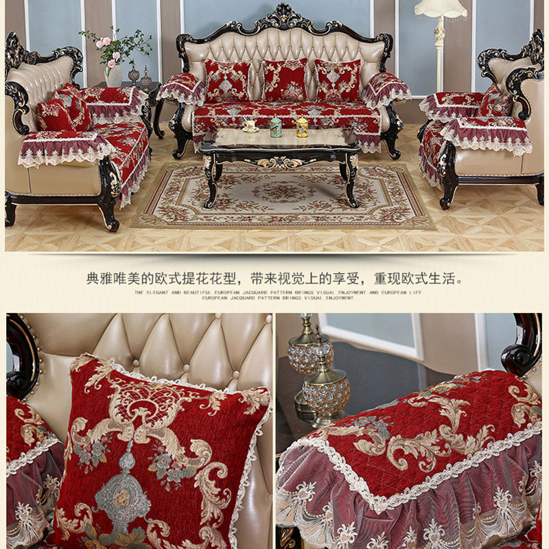 Red sofa seat cushion European sofa cover leather sofa cover all-round four seasons universal fabric non-slip back towel