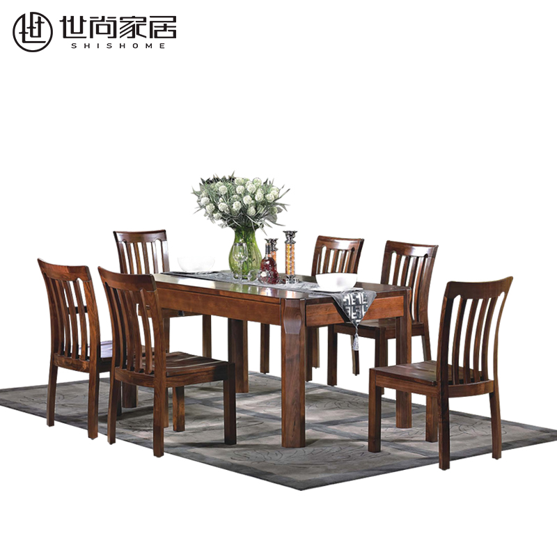 Shishang Yaxuan Simple new Chinese-style solid wood dining table North American black walnut dining table and chair combination dining room furniture