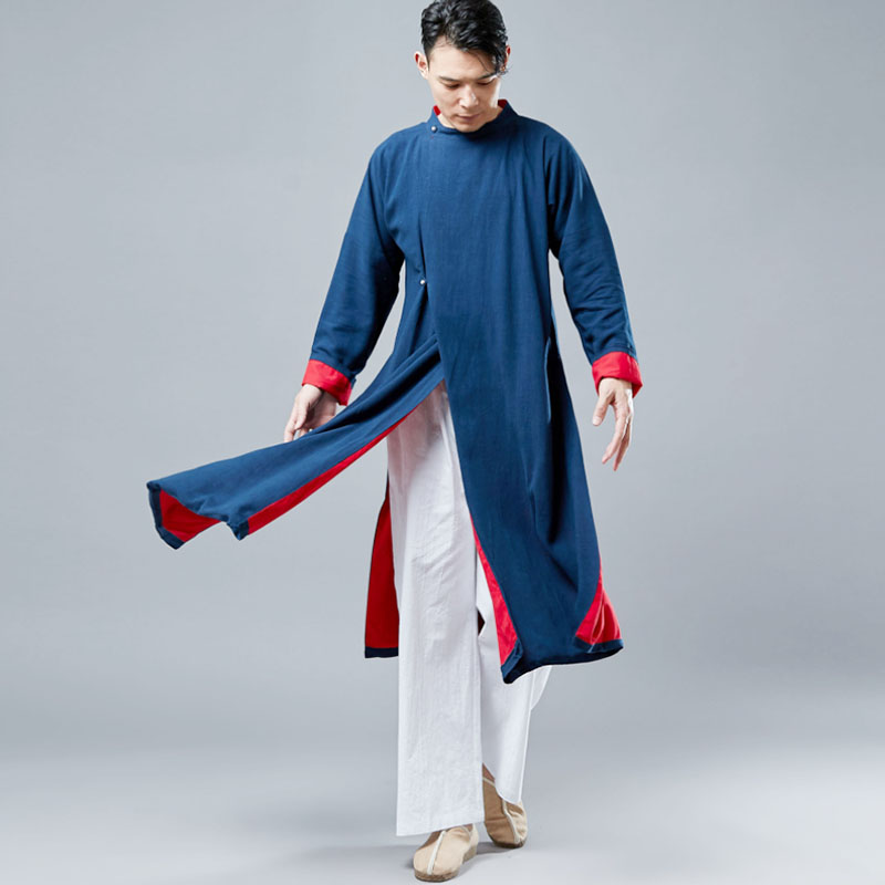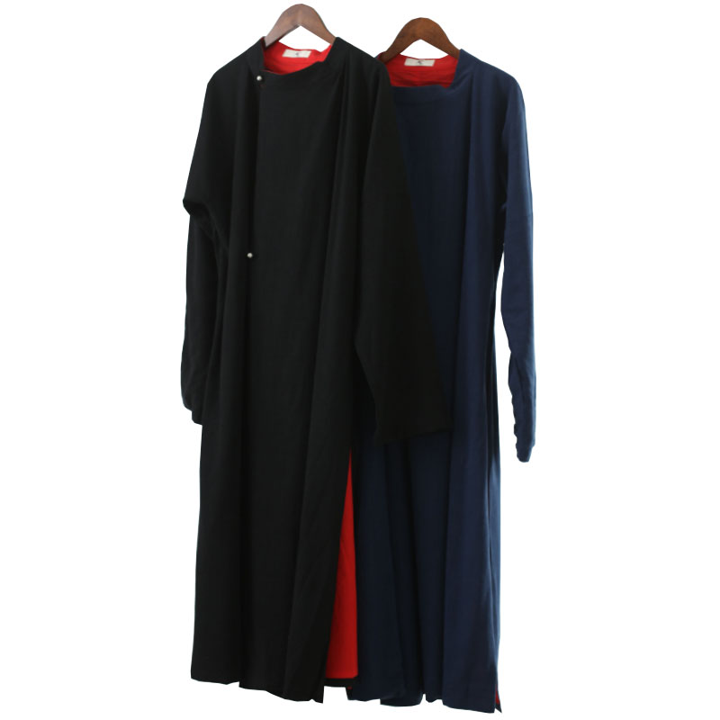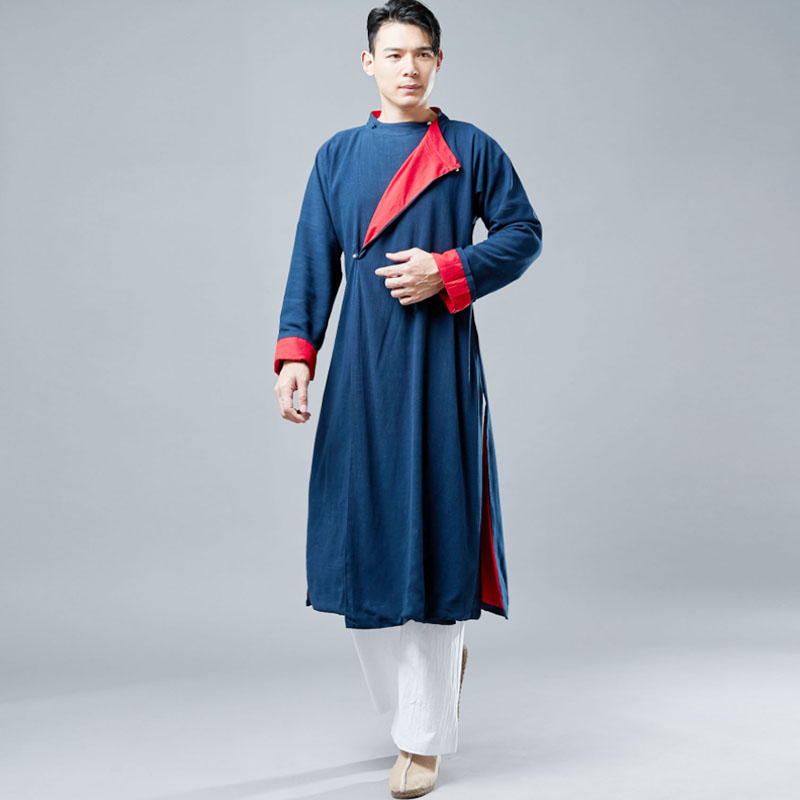 Chinese Wind Men's Clothing Linen Brooded Cardioveryurai Chinese gown gowns gowns gowns The long version of the meditation tea caveat in the middle of a long version of the gowns