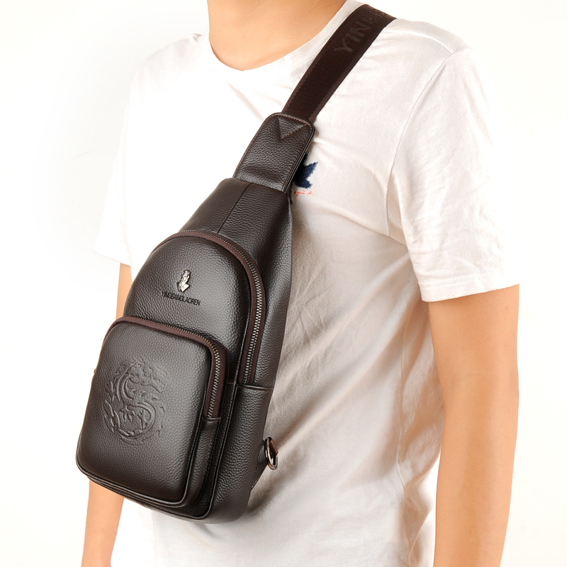 Genuine Leather Chest Bag Male headlining Bull Leather Men's Bag Inclined Cross Pack Mature Man Bag Zero Wallet Chest Front Bag Biking Bag Men's Bag