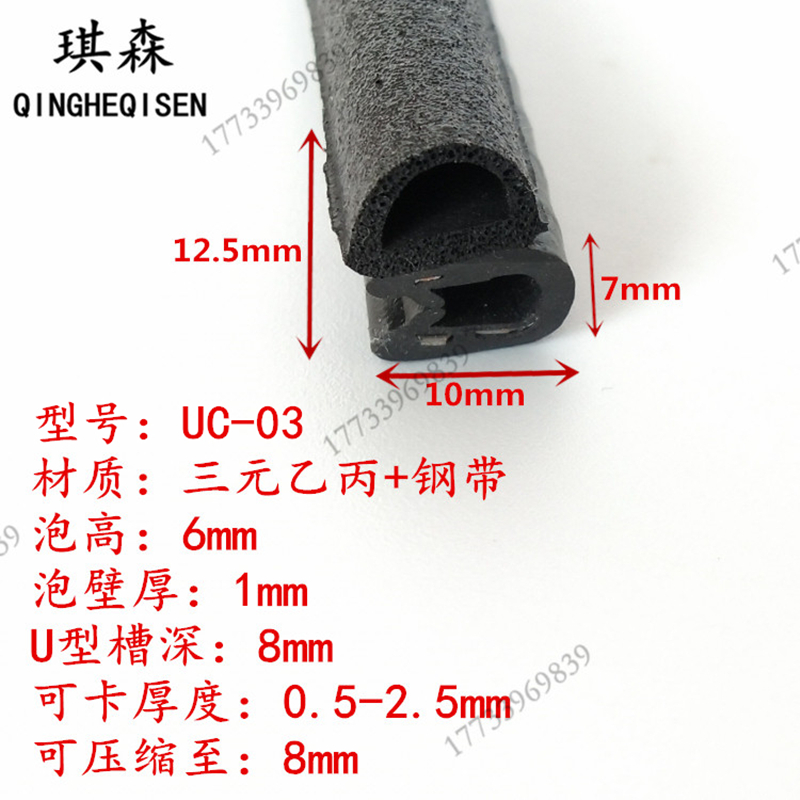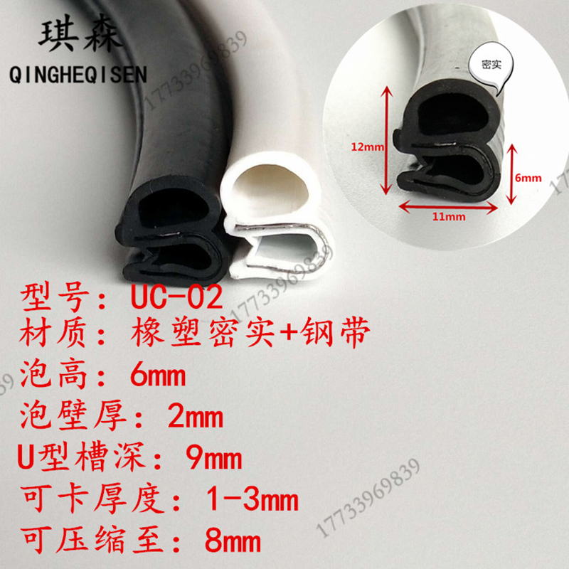 U-shaped side bubble seal Rubber edging U-shaped steel plate glass card Car door seal Steel strip seal