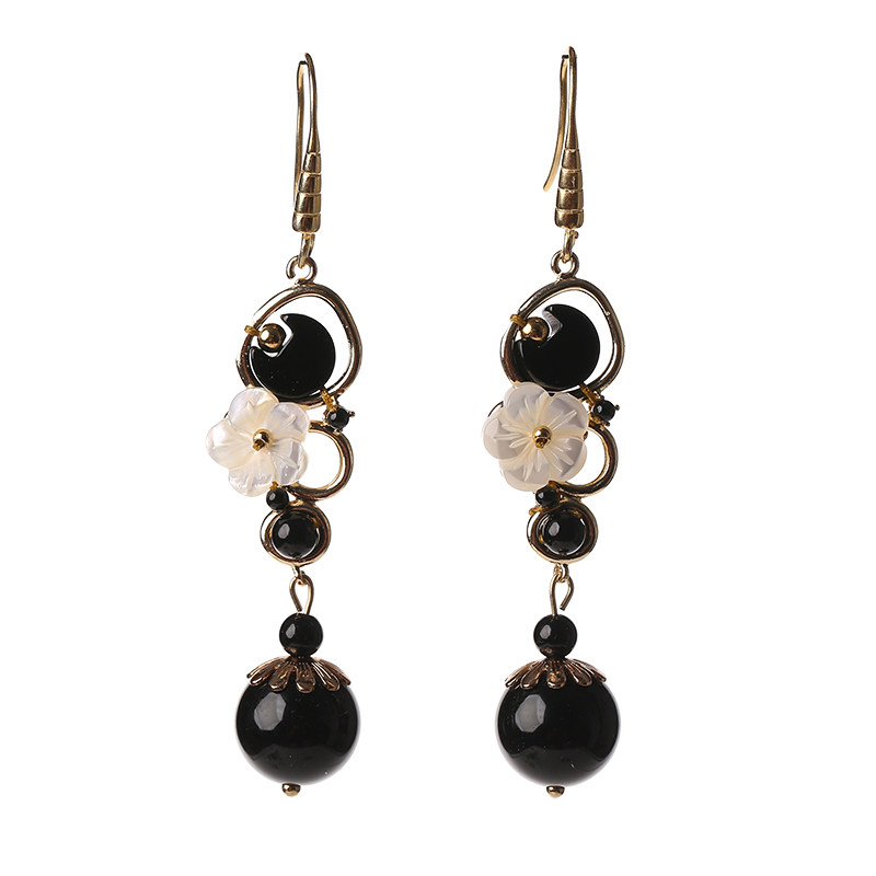 Long version of super-fairy earrings retro national wind ear decoration Black Manau personality Pendant Round Face slim fit Accessories Ear Clip Woman