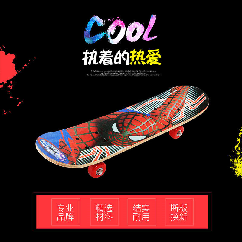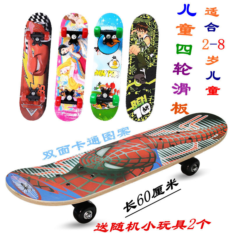 Children's 4-wheel skateboard double-sided cartoon pattern double rocker baby beginner 60 cm child scooter spider man
