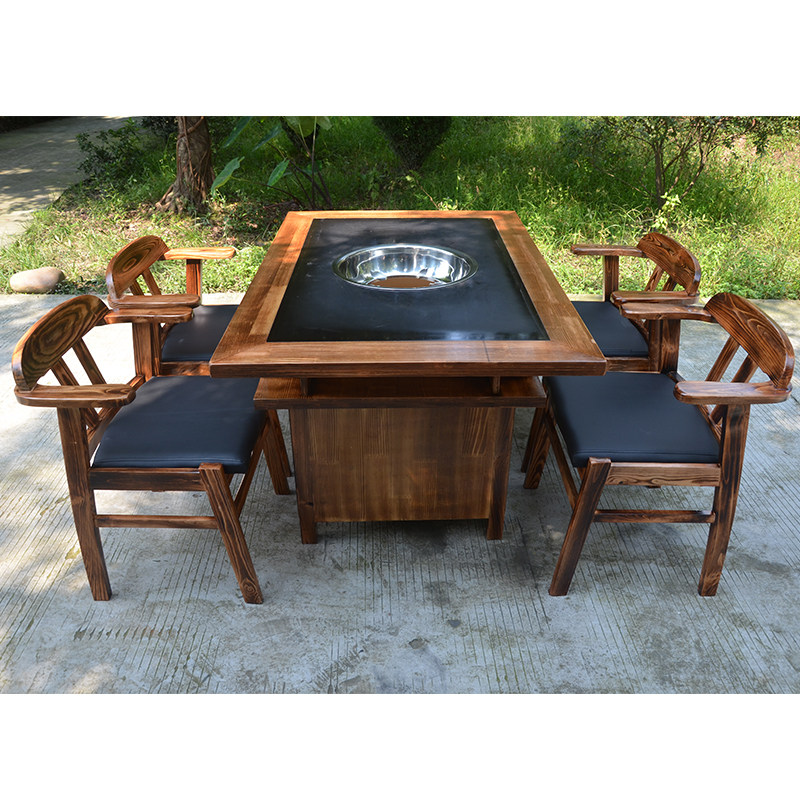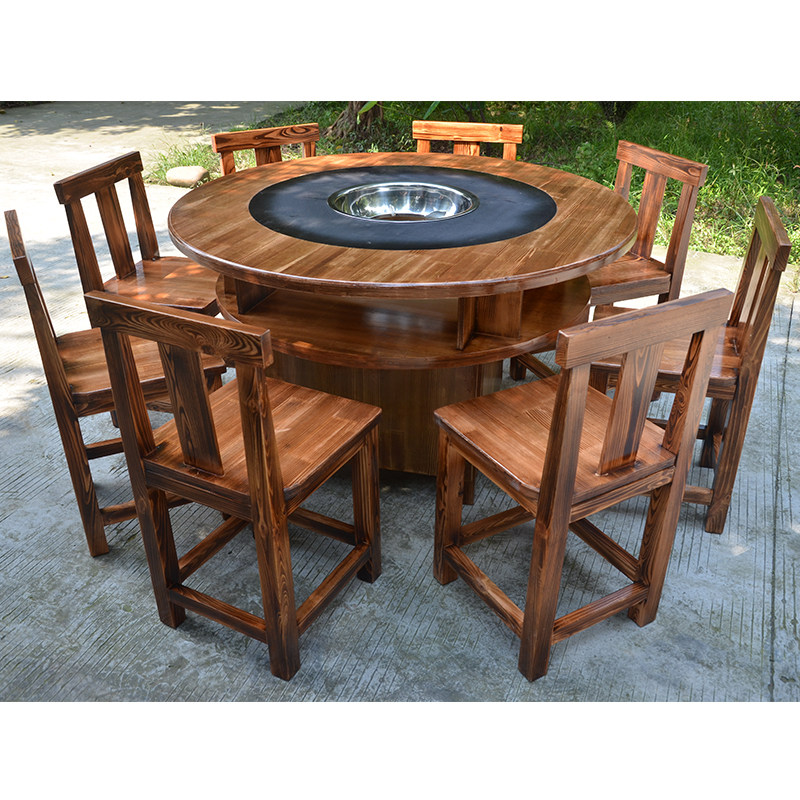 Custom solid wood imitation ancient hot pot table solid wood string hot pot table and chairs marble hot pot table table and chairs combination kit-Taobao