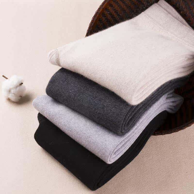 Woman in wool pants with warm pants outside wearing sanitary pants knitted seamless inside cashmere pants
