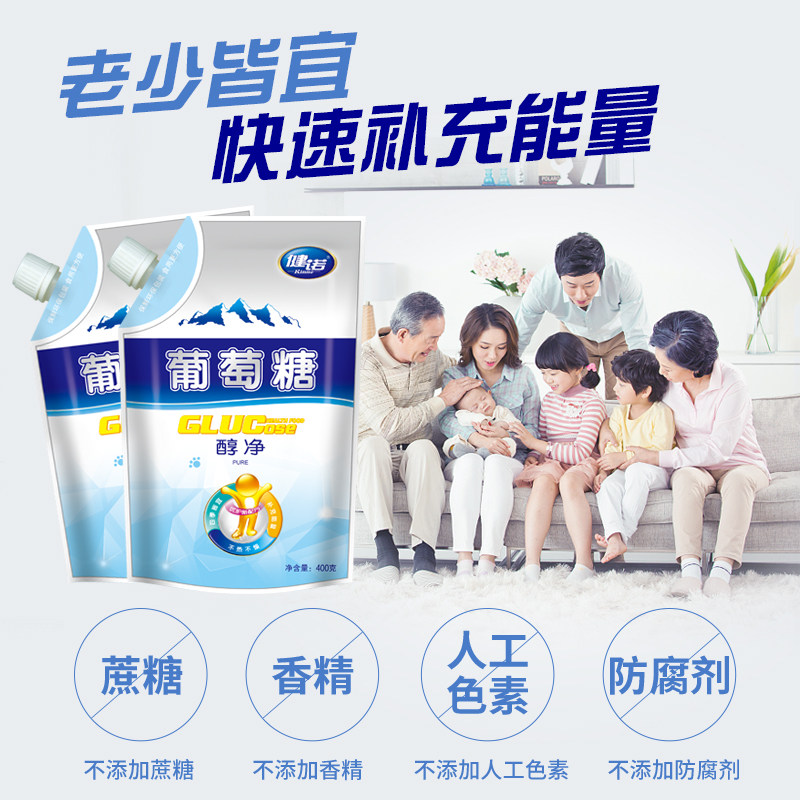 Jian Nuo Edible alcohol net glucose Powder for children and adults Hypoglycemia Sports supplement energy glucose 400g*2 bags