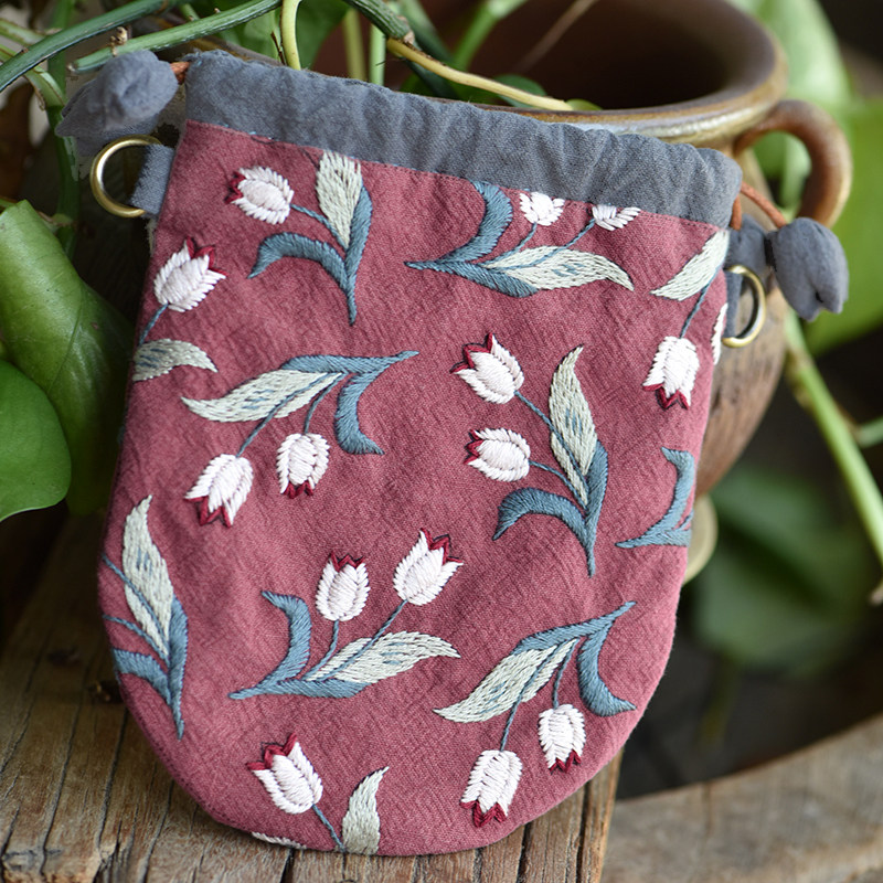 Tulip European-style embroidered embroidered material bag kit handmade DIY cloth art homemade parent-child cableway