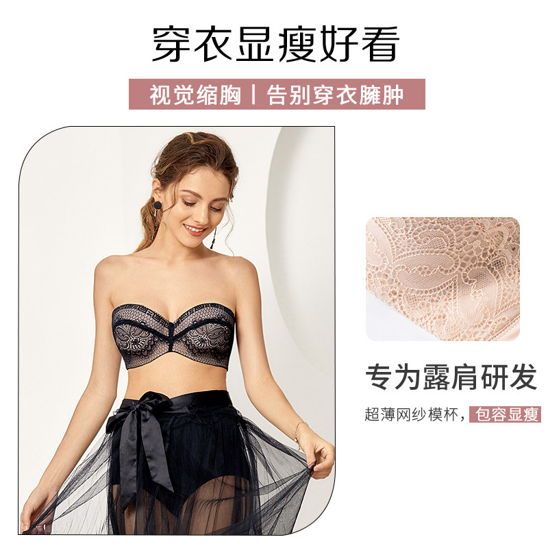 Lanqin thin section without shoulder strap bra obliterate large breasted chest patch with female wedding dress special large size bra lingerie bra