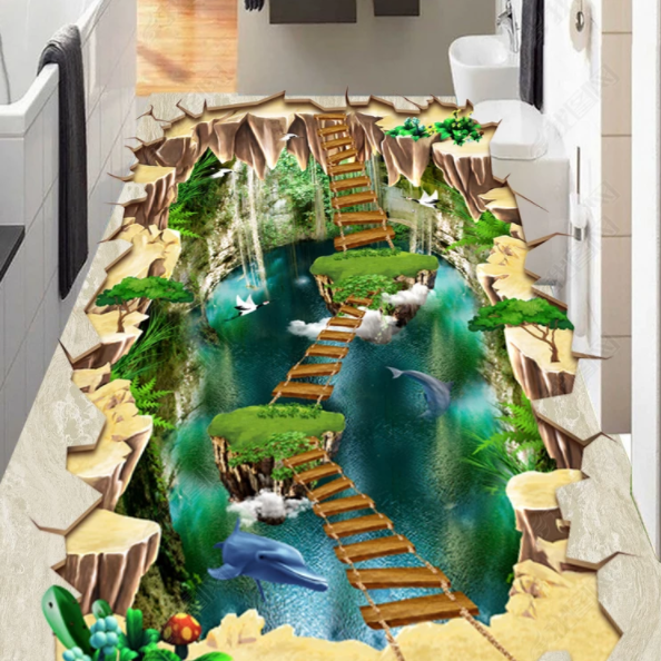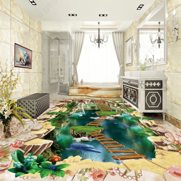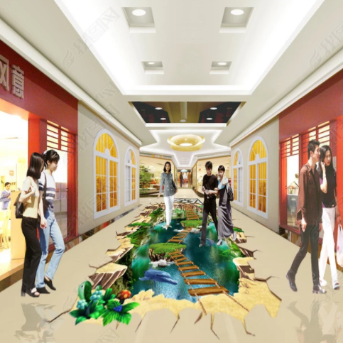 3d three-dimensional floor paste shopping mall tile floor decoration cinema science and technology museum floor paste floor leather thrilling