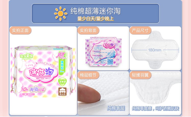 Jieling Taotao Oxygen Cotton Sanitary Napkin Mini Tao 10 Tablets 180mm Fragranceless Refreshing Small Wing Protector Cotton
