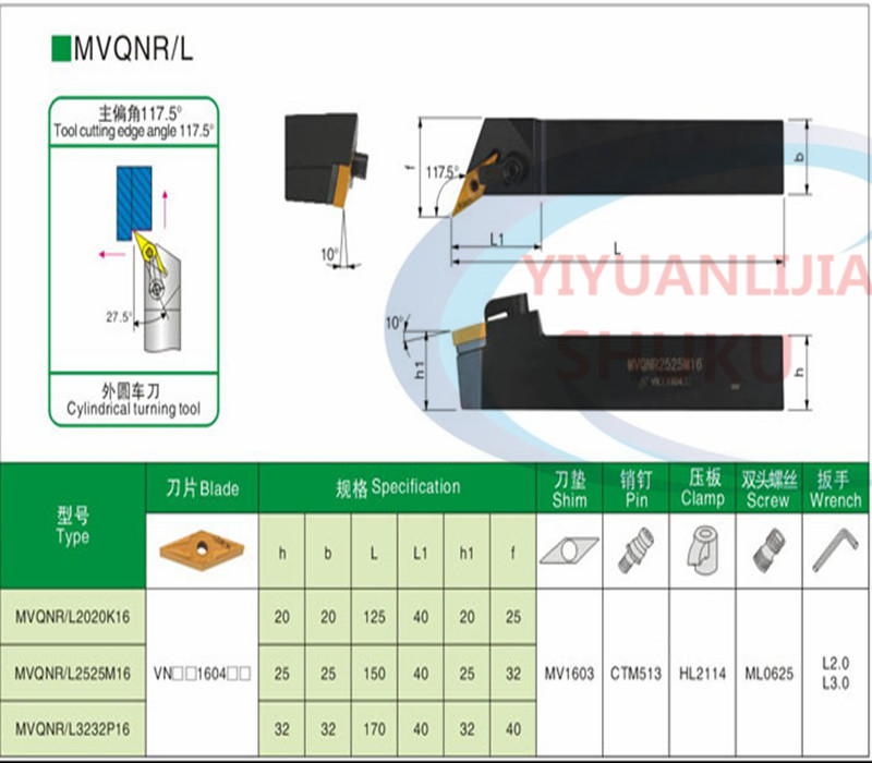 MVQNR1616H16 positive knife MVQNL1616H16 negative knife MVQNR2020K16 positive knife MVQNL2020K16 negative knife MVQN