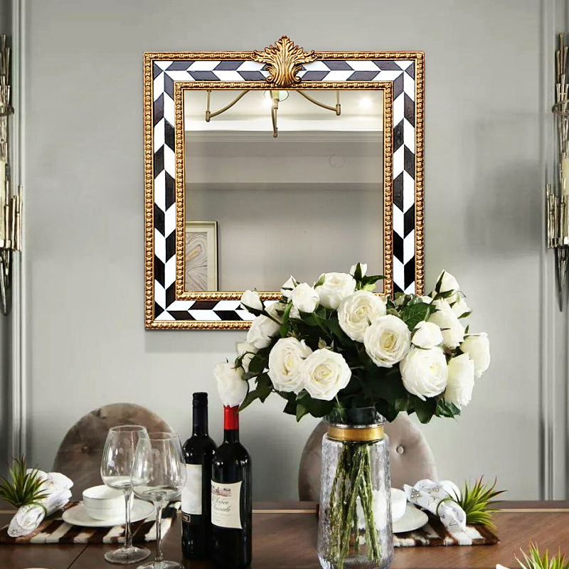 European classical square wall decoration wall mounted mirror wall proof bathroom mirror dresser mirror customization