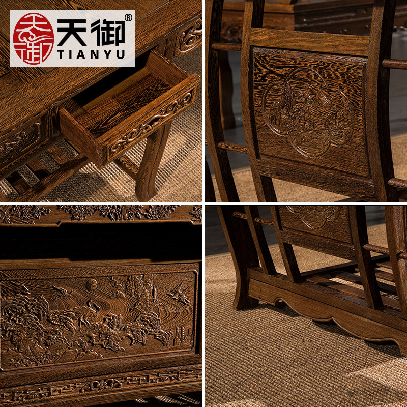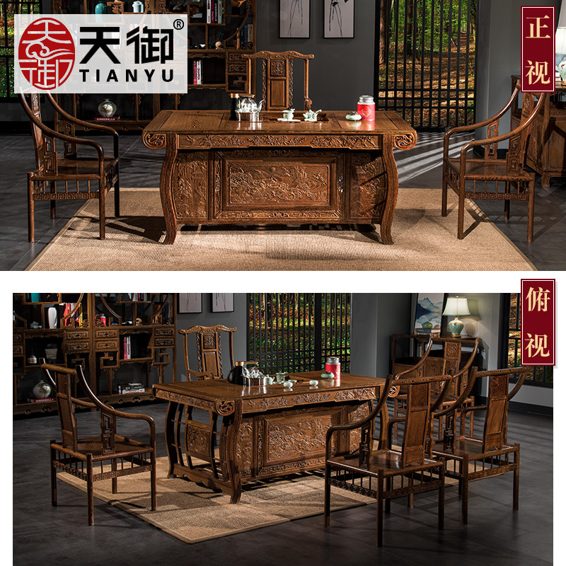 Wenge tea table and chair combination solid wood antique tea room meeting tea table new Chinese kung fu coffee table mahogany tea table