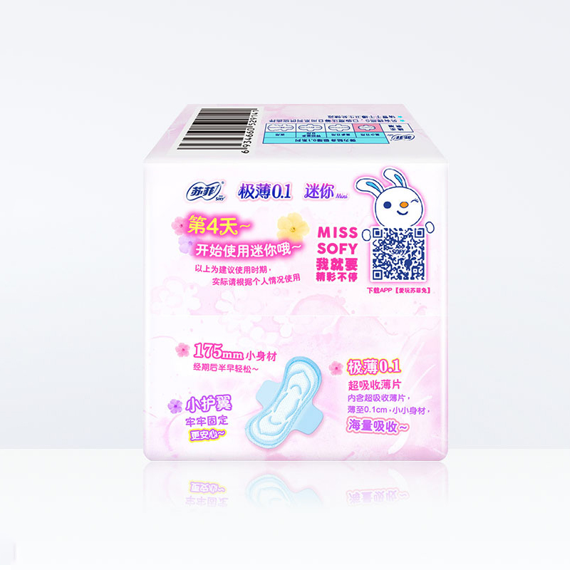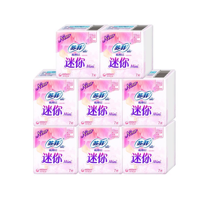Sufi sanitary napkins daily elastic close-fitting extremely thin mini scarlet cotton soft 7 pieces 8 packets of combined warp-less protective wing-Taobao