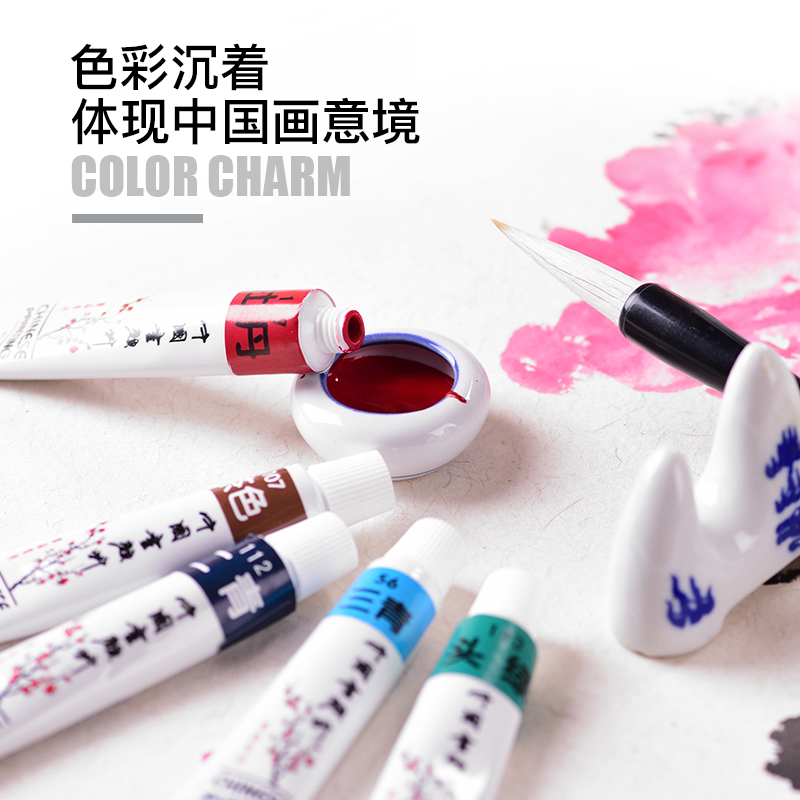Meibang Qifu Chinese painting paint set beginner calligraphy ink Chinese painting pigment 12 colors 24 colors landscape painting pigment set beginner Gong pen painting rice paper Chinese painting pigment