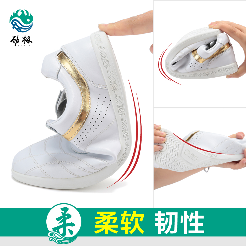 Summer Breathable Genuine Leather Tai Chi Shoes Soft Bull Leather Beef Tendon Bottom Kung Fu Shoes Men And Women Practice Shoes Children Taijiquan Shoes