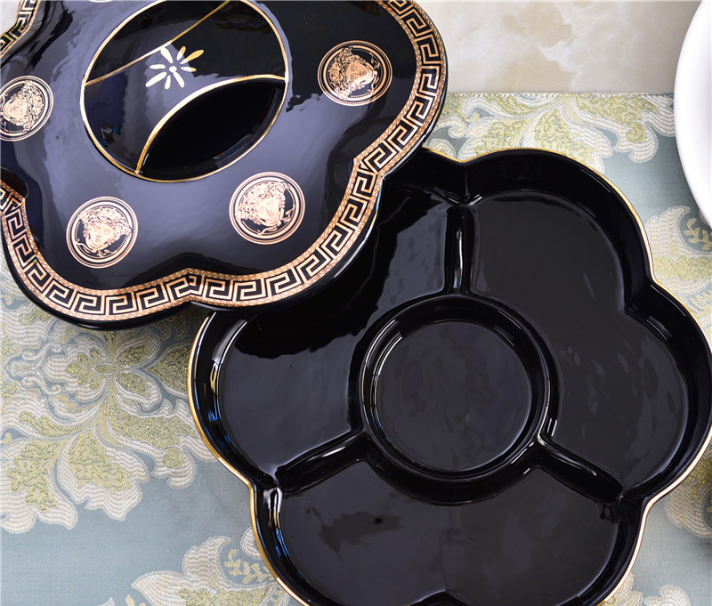 Eurostyle Dried Fruit Pan Ceramic Fruit Pan Black Nut Snack Candy Box Creative Dried Fruit Box Compartment with lid