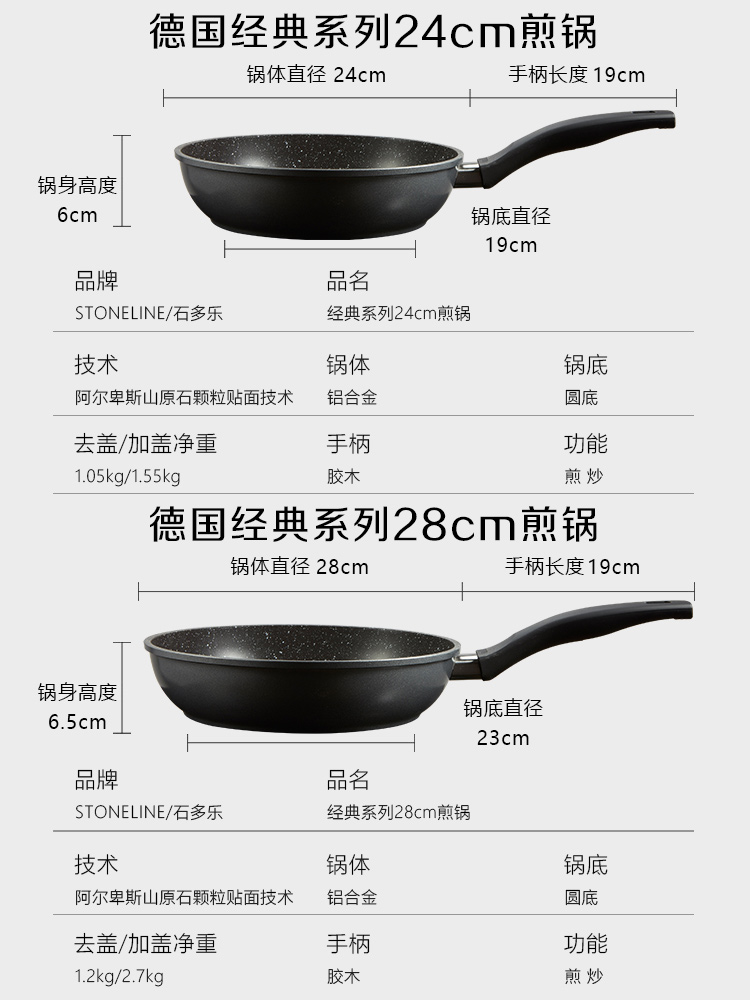 24CM frying pan (classic) 28cm frying pan (classic) 24cm frying pan (detachable handle, can be fed into oven dishwasher) 28CM frying pan (detachable handle, can be fed into oven dishwasher) 28cm frying pan (excellent)