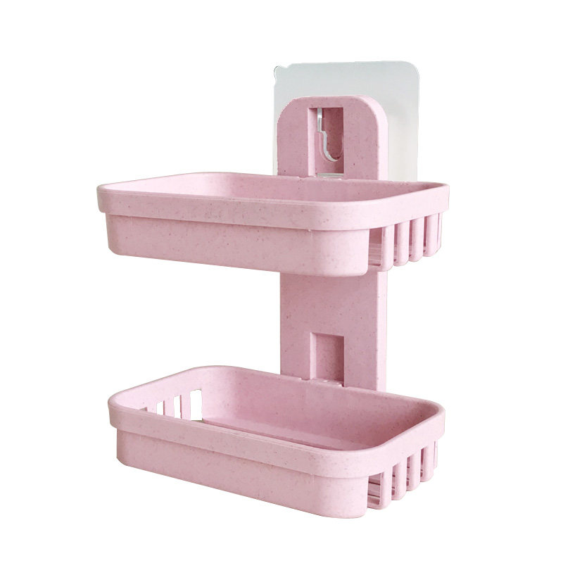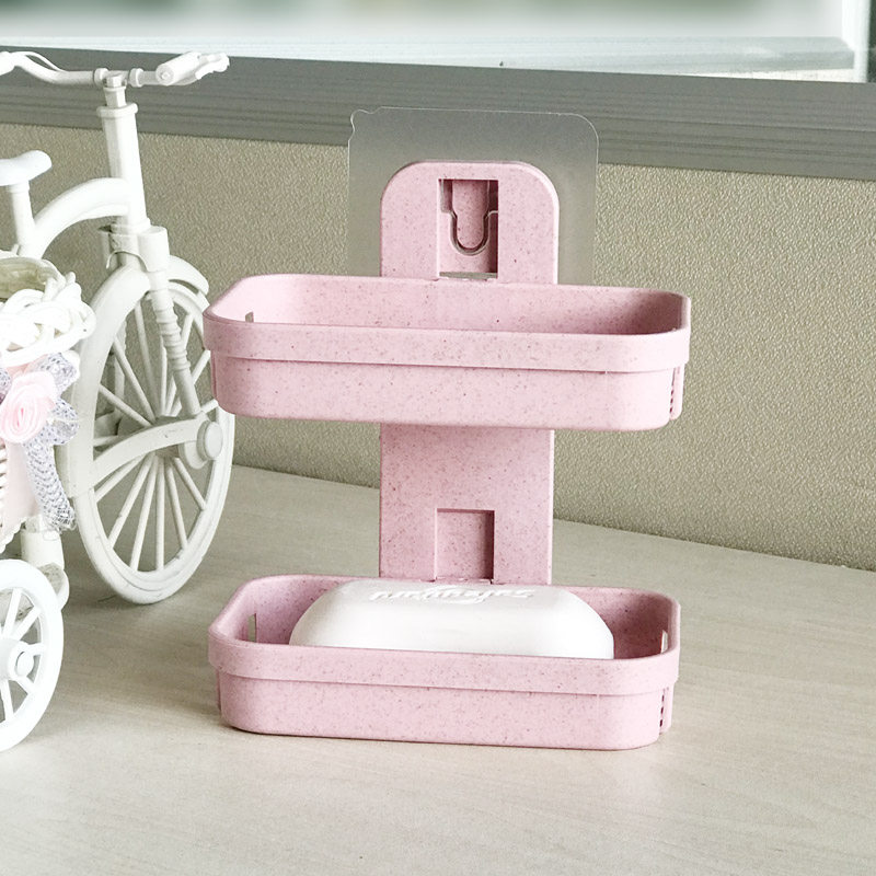 No-mark paste Wheat Straw Double Layer Soap Containing Box Drain Suction Wall Type Toilet Wall-mounted Soap Shelve