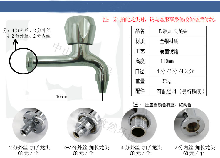 Water dispenser lengthened tap 4 extra-wire boiled water machine cage head high temperature resistant core 2 points inner tooth pure copper