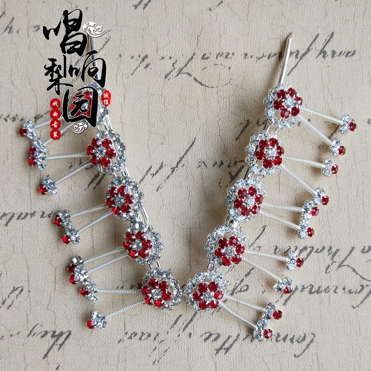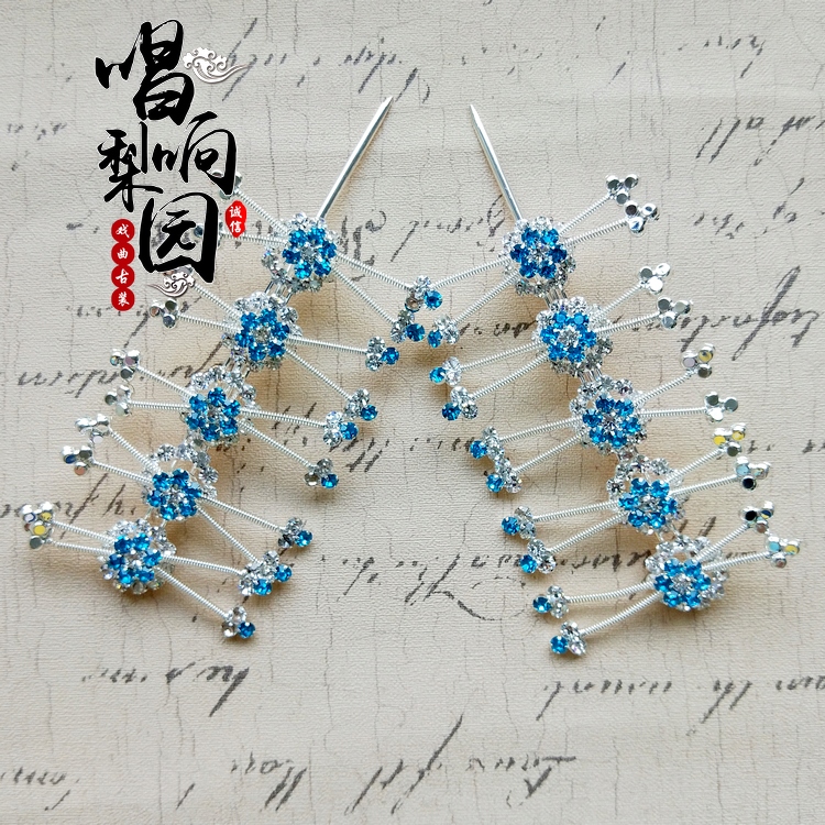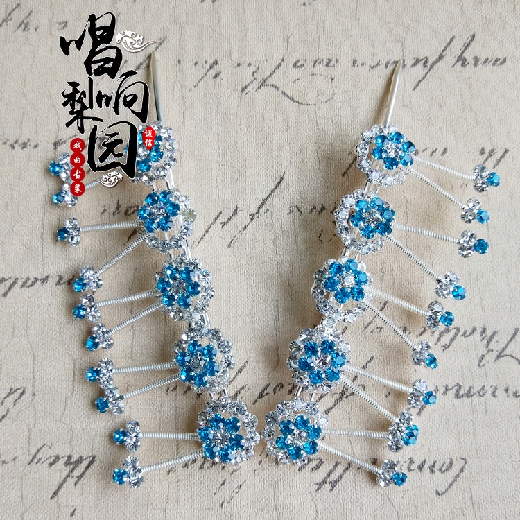 Singing the new improved Peking Opera Head face Opera Tsing Yi Fudan Miss headwear Pressing Temples with Twin Light Water Drill Butterfly Strings