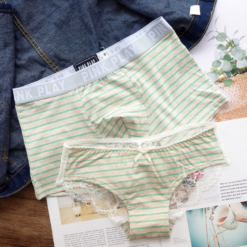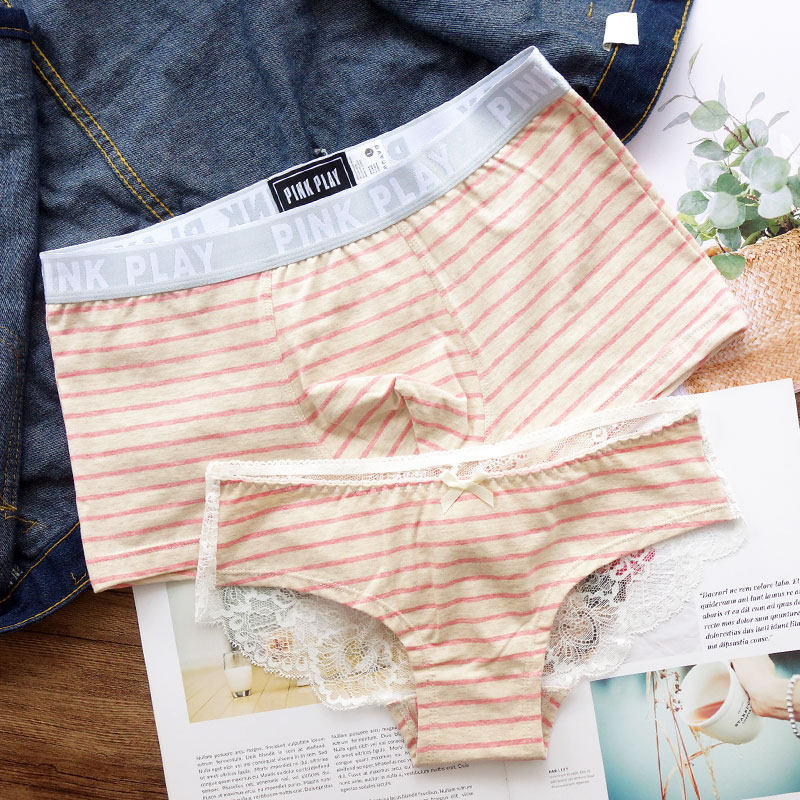 2 pairs of underwear women's lace low waist hot Japanese couple underwear cotton sexy suit couples lace edge sexy