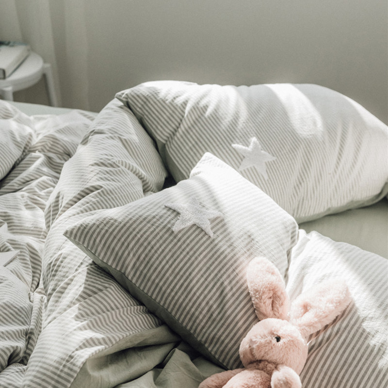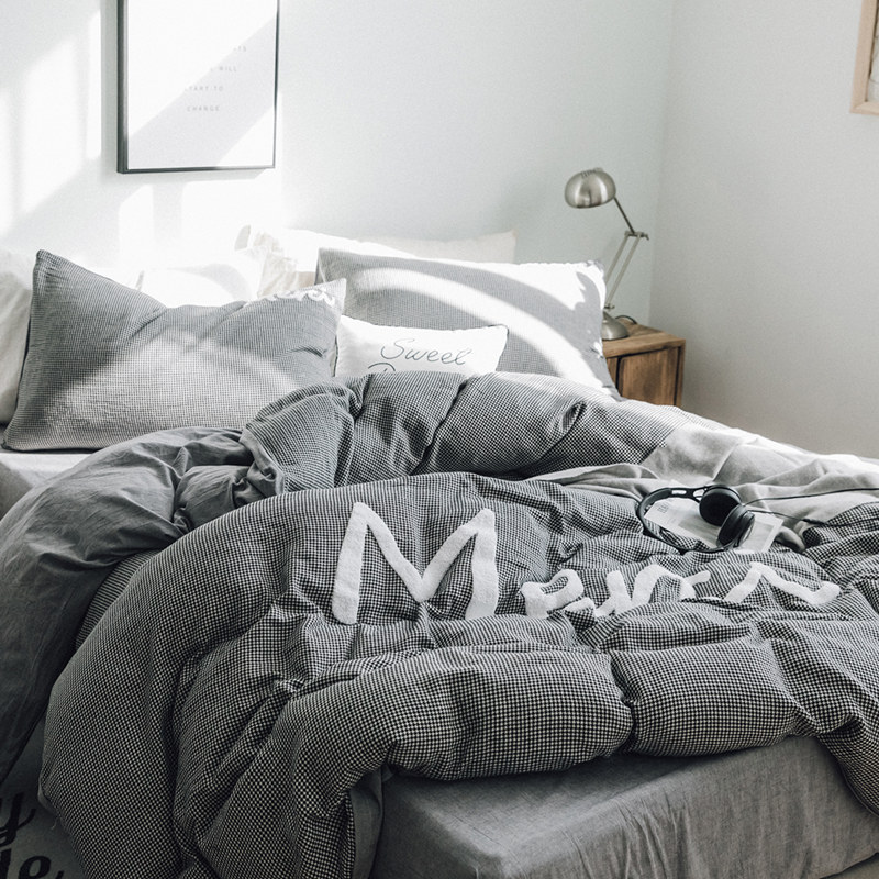 Colour loom washed cotton full cotton four sets towels embroidered striped minimalist pure cotton quilt cover bed linen bed