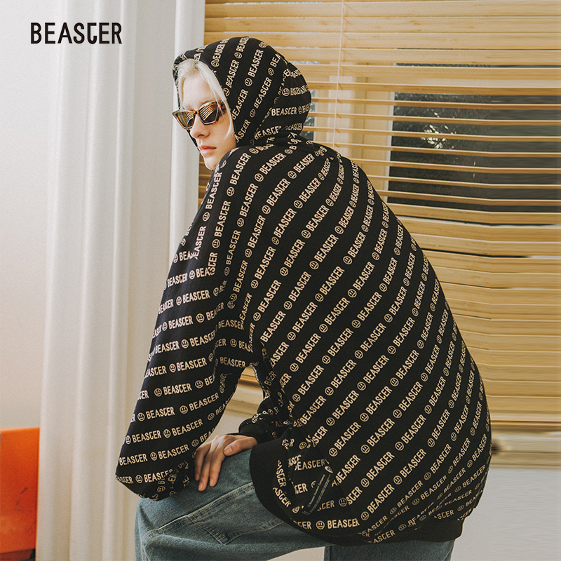 BEASTER early autumn couple chic lazy fashion brand hip-hop national tide full print sweater men loose hoodie jacket