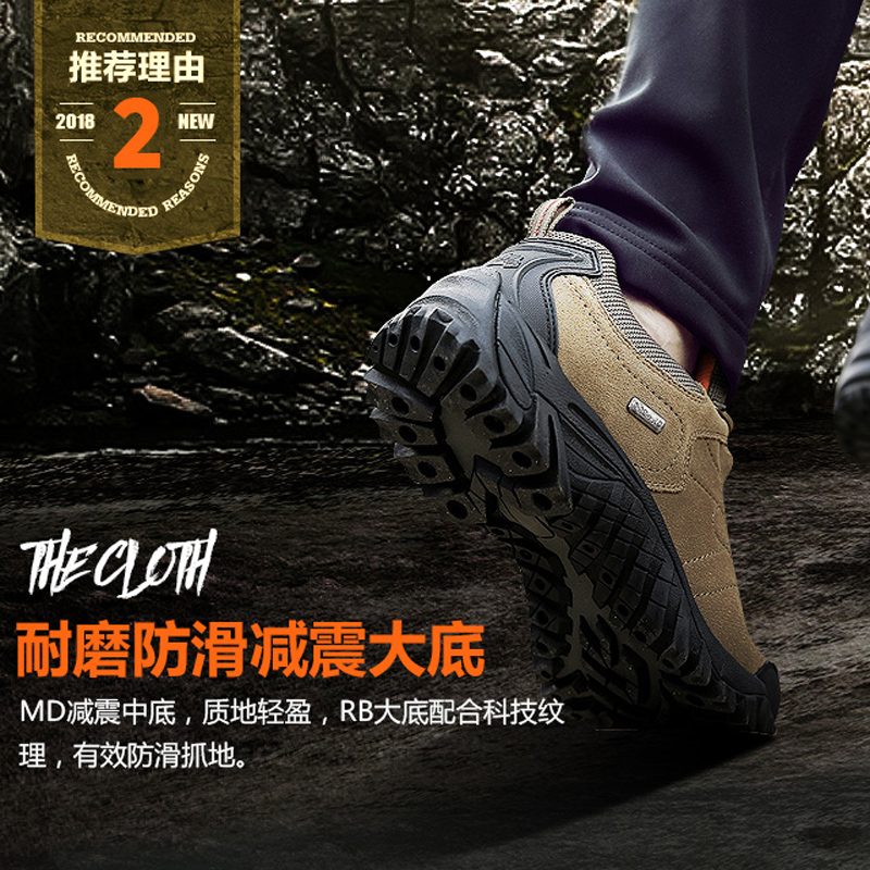 (Flush) Outdoor Mountaineering shoes Men's shoes breathable and light low Help genuine leather Waterproof Non-slip Hiking Shoes Sport Tours