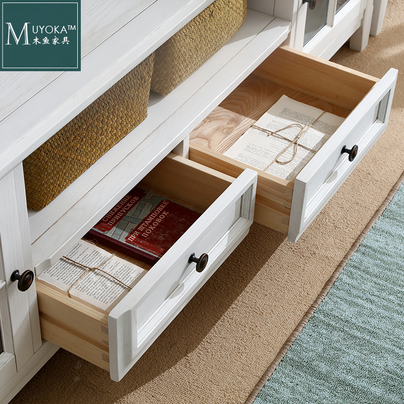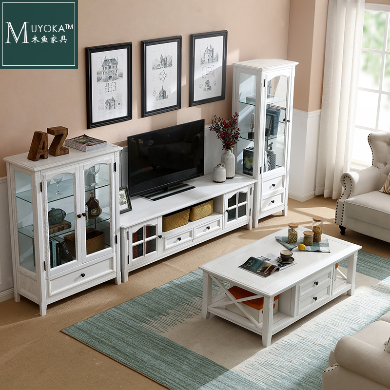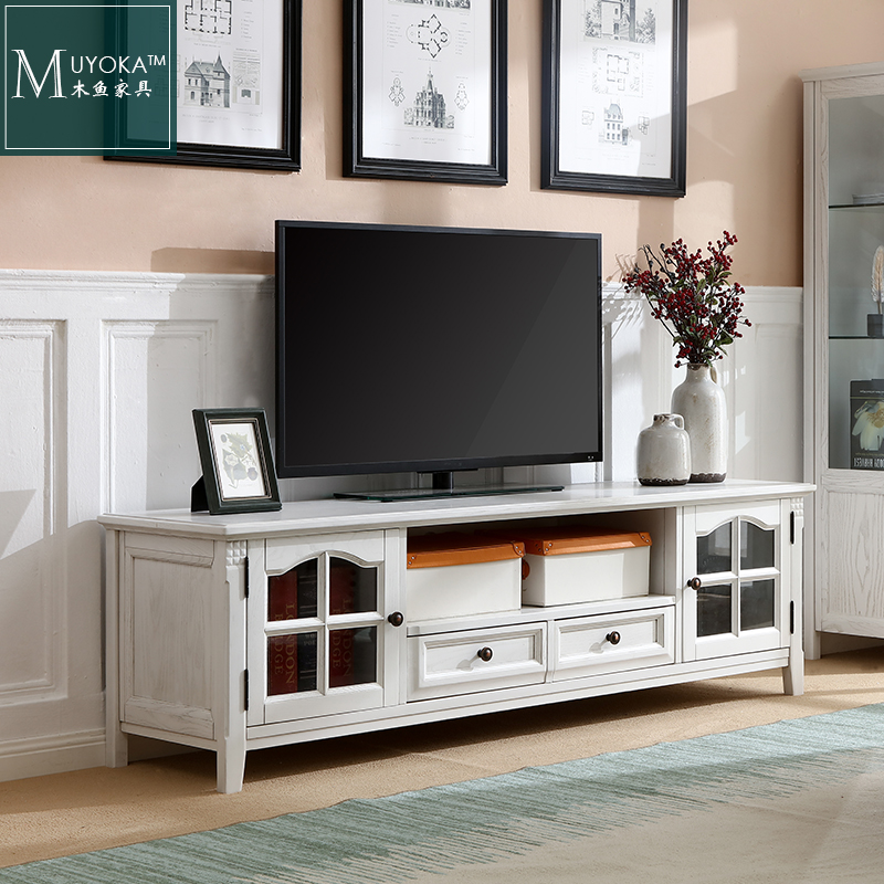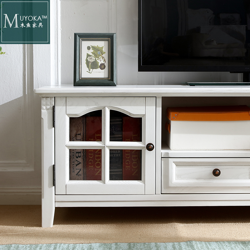 American countryside white wax wood living room TV cabinet combination solid wood TV cabinet low cabinet white retro simple and beautiful wind furniture-Taobao