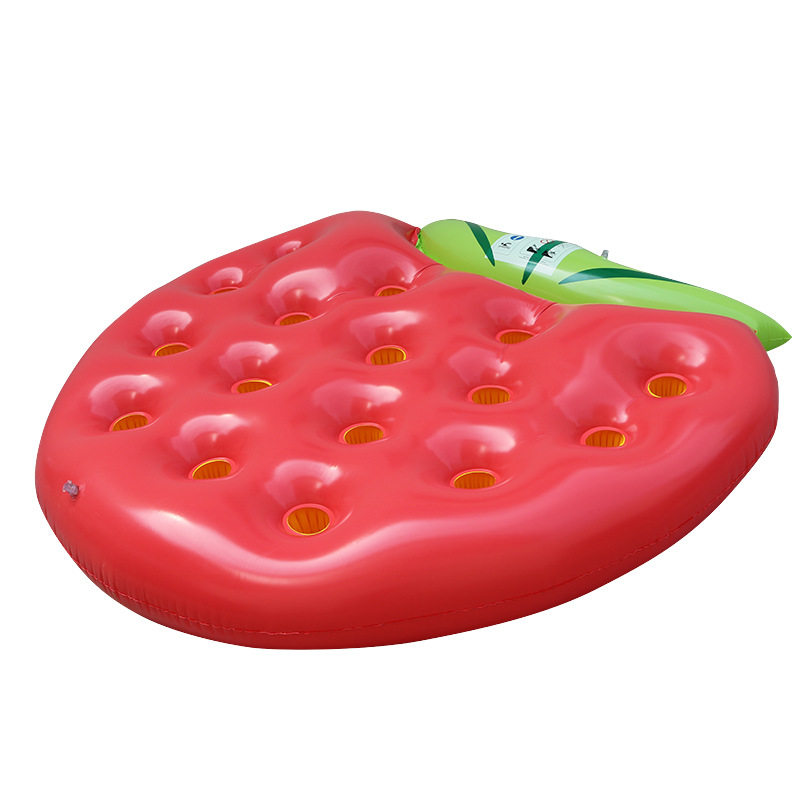 Large size inflatable red strawberry puddler male and female swimming pool kid reclining water swimming circle sea with cup-floating bed