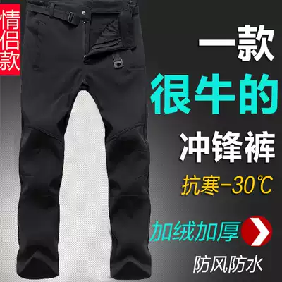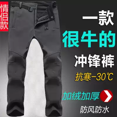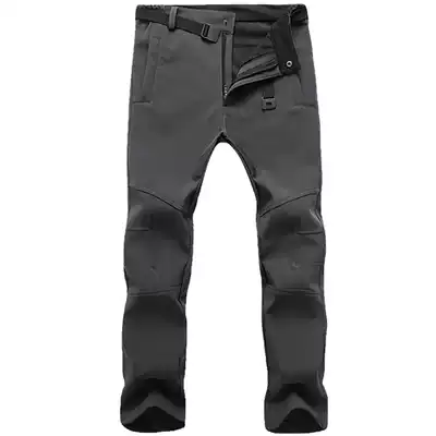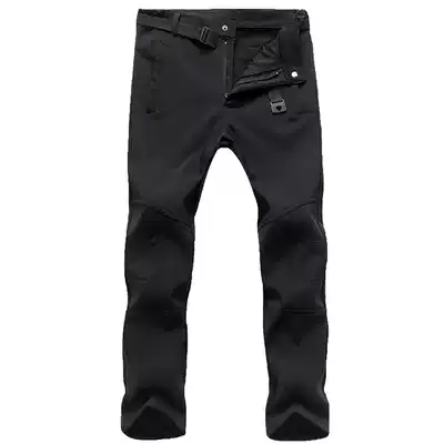 Outdoor soft shell assault pants men's autumn and winter fleece padded mountaineering pants men's warm ski fleece pants men's wind and cold