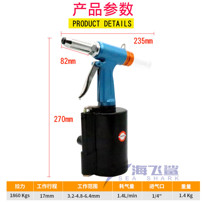 Sea Flying Shark Powerful 56V Pneumatic Pull Nail Gun Three Paws Industrial Grade Pull Rivet Gun Pull Riveter Pliers 4-4 4-4 8-6 4mm