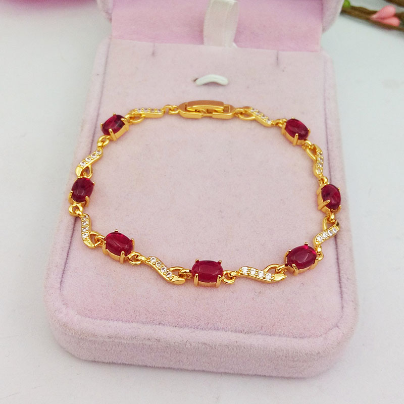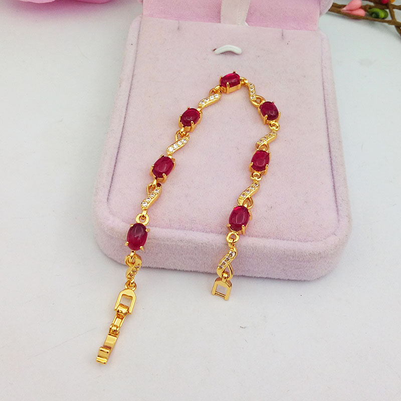 The new gold-plated water drop bracelet set with ruby temperament wild simulation Vietnamese sand gold jewelry set for a long time will not fade