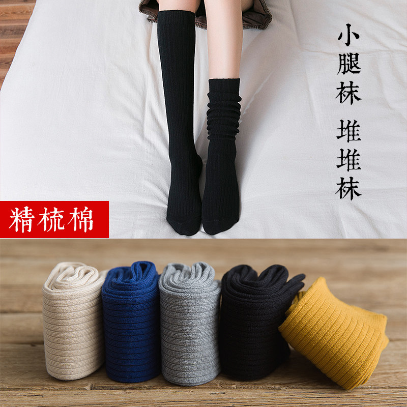Black Sox children among the South Korean high waist colleges Wind heaps Sox Sox fall days South Korean version of autumn and winter calf socks-Taobao