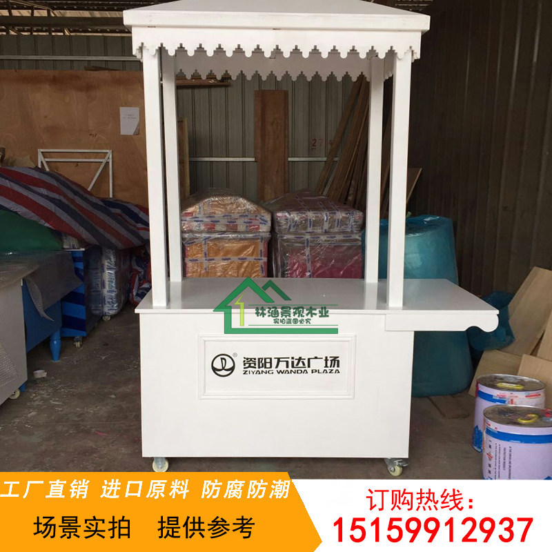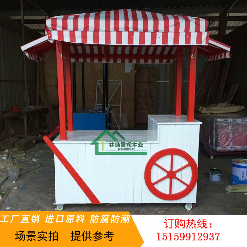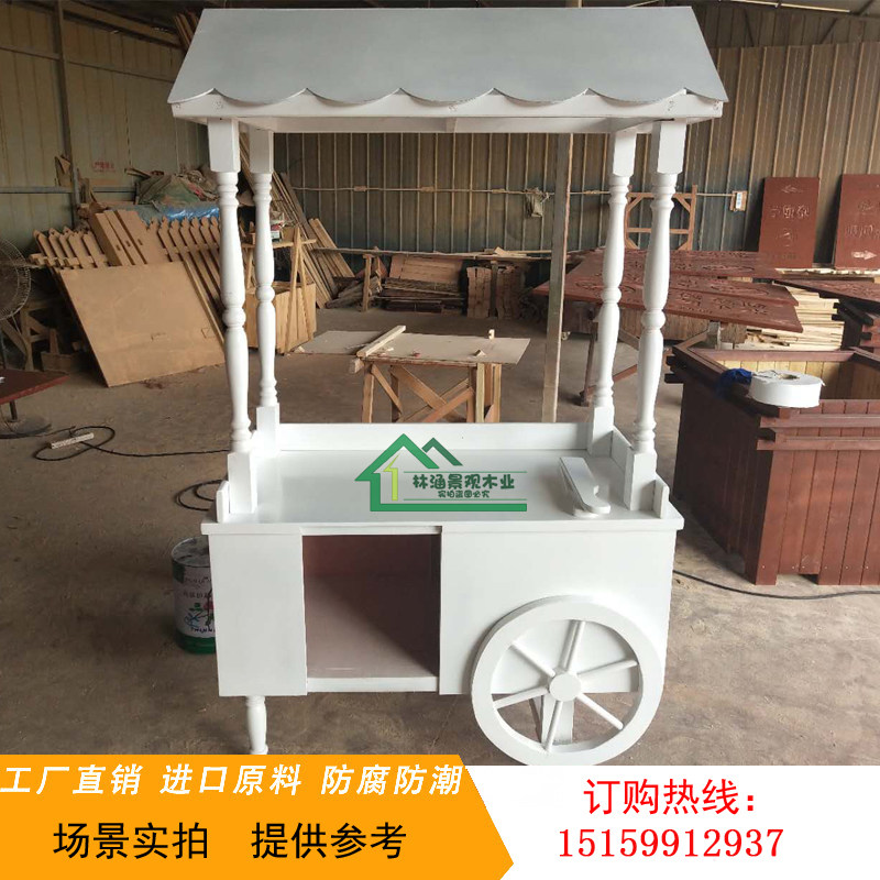 Anti-corrosion wood vending car customized scenic spot movable milk tea stall hand push stall car shopping mall cotton candy float
