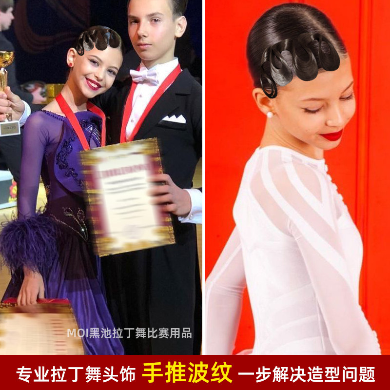 Hand push ripple styling Latin dance headdress professional children's black pool competition national standard dance board