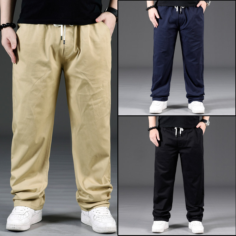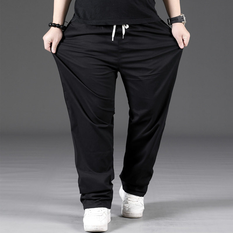 Summer slim size with large size casual pants male loose straight cylinder fatter gats plus fattening for spring and autumn pure cotton tightness trousers