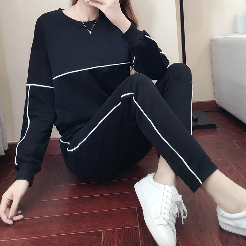 Plus velvet thick casual sportswear suit women's spring and autumn 2022 new two-piece Korean fashion thick T-shirt is thin