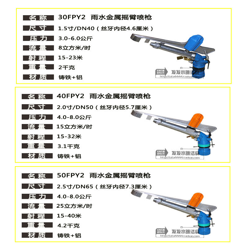 50FPY2 rain spray gun DN65 2 5 inch 2 5 inch spray gun 1 2 m bracket 2 5 inch spray gun 1 5 m bracket 2 5 inch aluminum base 2 5 inch aluminum turn shaft